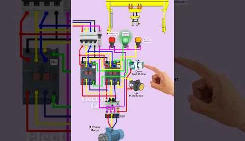 This is a 3 phase induction motor forward and reverse control circuit wiring. Using 2 contactor and overload relay. The animation shows how the circuit is used in crane operation.